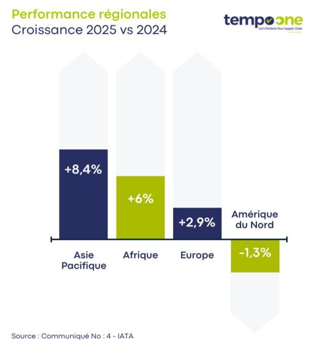 - L’Amérique du Nord est la seule région en déclin : -1,3 % sur l’année, directement impactée par les politiques tarifaires.